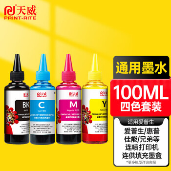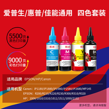 此墨水为爱普生/惠普/佳能 大通用经济装墨水,用于打印机外置连供系统或喷墨、墨仓式打印机的填充。主要用于普通彩色文档类打印,如需更高打印效果,建议购买我们专业装100ML墨水。其它特殊机型墨盒不支持加墨,具体请查询表格或提前咨询客服确认。