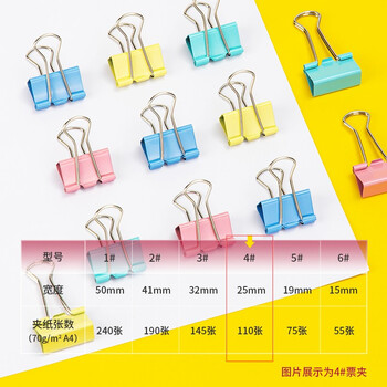 得力(deli)96只25mm彩色长尾夹票夹 4#中号金属燕尾夹票据文件夹子 办公用品 96只/筒 33425