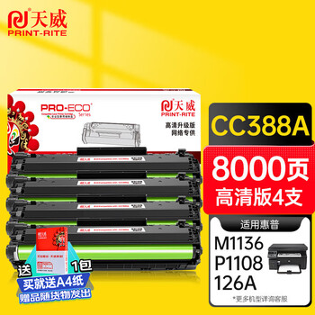 天威CC388A硒鼓高清版4支 88A硒鼓 适用惠普HPM1136 M128fn M226dw m126a 1007 P1008 P1106 P1108 M1213墨盒