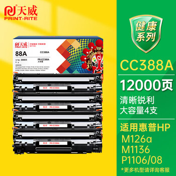 天威388a硒鼓88a适用惠普m1136硒鼓 hp1108硒鼓 m126a m128fn p1007打印机p1106墨盒cc388a硒鼓 4支大容量