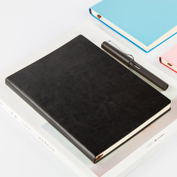 广博(GuangBo)A5笔记本子商务简约记事本加大软皮皮面本日记本办公文具会议本记录本160张黑色GBP25888