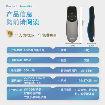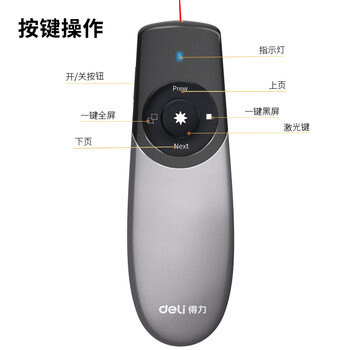 得力(deli)激光笔 可充电翻页笔演讲笔 PPT翻页笔 投影笔激光翻页笔教鞭 无线演示翻页器 红光 灰色2805