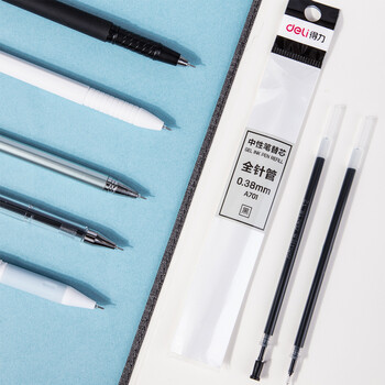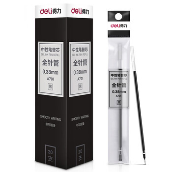 得力(deli)【热门商品】0.38mm全针管拔帽黑色中性笔笔芯 学生办公水笔签字笔替芯 黑色20支/盒 A701