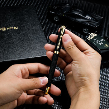 英雄(HERO)钢笔 1520粉色绒砂多彩细尖铱金钢笔签字男女款办公礼品墨水礼盒套装