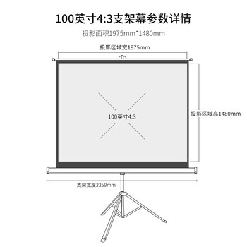 快朵小屋100英寸4:3白塑支架幕布投影仪幕布家用办公投影机幕布抗光幕布移动便携幕布极米坚果当贝爱普生