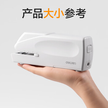得力(deli)双电源电动自动订书机/订书器电子装订订书机大号平钉省力 适配24/6钉 办公用品 白色0489