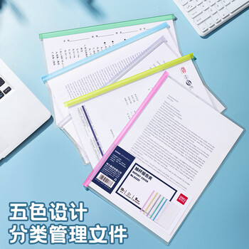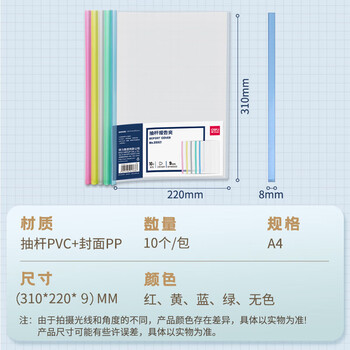 得力(deli)10只A4透明拉杆夹 抽杆夹 文件夹资料夹学生考试产检报告资料收纳 5色装33321