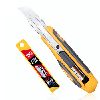得力(deli)大号耐用美工刀套装 自动锁定功能裁纸刀/小刀套装 美工刀1把 10片美工刀片 办公用品 33417
