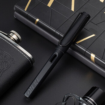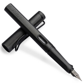 英雄(HERO) 钢笔359 正姿 磨砂黑 EF尖薄厚片工艺学生练字钢笔 (附加6支墨囊)铱金钢笔签字笔