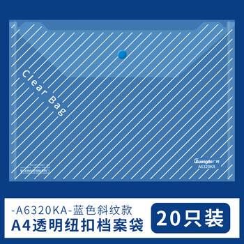 广博(GuangBo)(GuangBo)A4按扣纽扣文件袋斜纹加厚透明大容量资料包学生用试卷收纳档案办公20只蓝色A6320KA