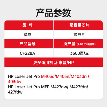 绘威228a硒鼓 适用惠普403d硒鼓hp m403dn m403dw m403n m427dw硒鼓 m427fdn m427fdw打印机墨盒 cf228a硒鼓