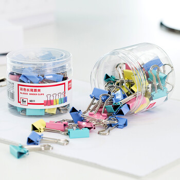 得力(deli)80只19mm彩色长尾夹票夹 5#小号金属燕尾夹票据文件夹子 办公用品 40只/筒 33426