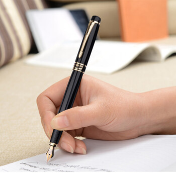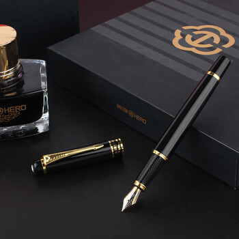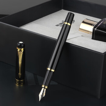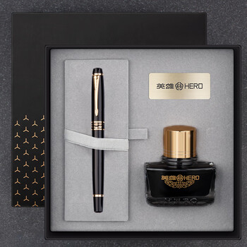 英雄(HERO)钢笔 1501黑色雅悦明尖铱金钢笔签字笔时尚办公学生墨水礼盒套装 F尖