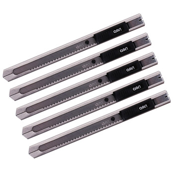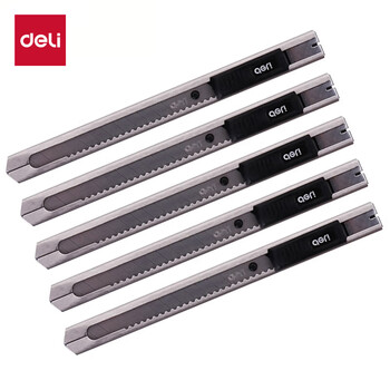 得力(deli)5把金属小号美工刀 自动锁裁纸刀小刀 办公用品 银色 P02058-05