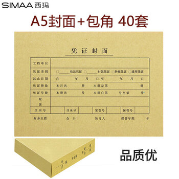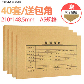 西玛(SIMAA)A5凭证装订封面40套+包角40个+封底A4纸的一半 财务会计报销粘贴单据记账凭证封面封皮FM131B
