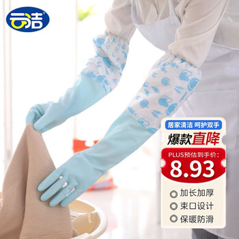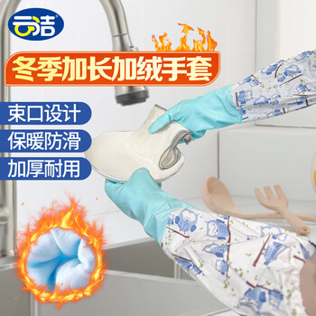 云洁手套洗碗加绒1双装保暖加长缩口长袖洗衣防水橡胶皮手套颜色随机
