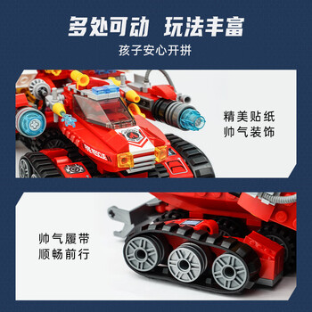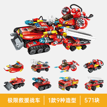 启蒙积木儿童拼装玩具合体变形战车男孩生日礼物6-12岁 极限救援战车