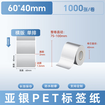 远平条码 亚银PET不干胶条码标签纸 横板60mm*40mm*1000张 支持定制