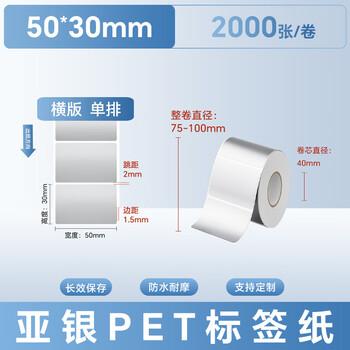 远平条码 亚银PET不干胶标签条码打印纸 横板单排50mm*30mm*2000张 支持定制