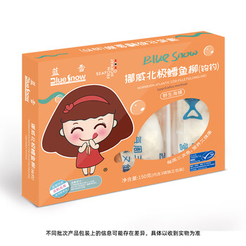 蓝雪冷冻挪威北极鳕鱼柳150g 宝宝儿童装钩钓去刺去骨真鳕鱼海鲜水产