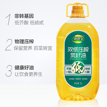道道全【保真菜籽油】食用油 双低压榨菜籽油 优质原料非转基因 5L*1桶