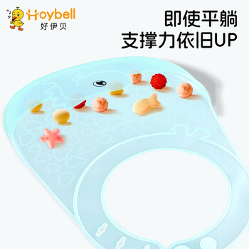 好伊贝(HOY BELL)宝宝围兜饭兜婴儿食饭兜儿童硅胶围嘴防水立体吃饭兜口水兜巾青色