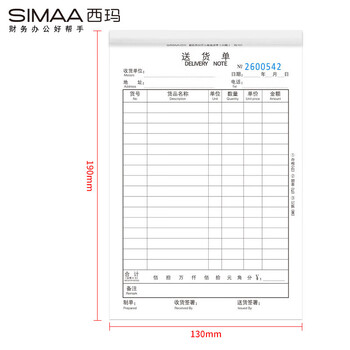 西玛(SIMAA)二联送货单 32k 130*190mm 30组10本装 优尚精品(蓝)销货清单销售出货出库无碳复写单据本