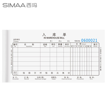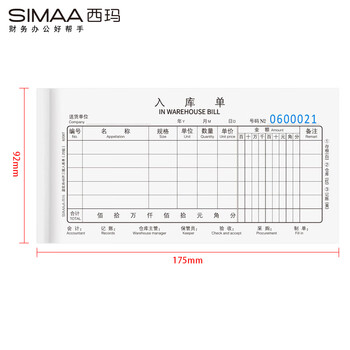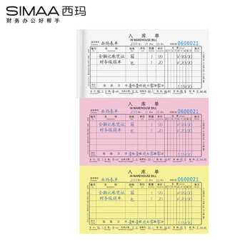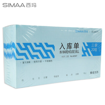 西玛(SIMAA)入库单三联 48k 175*92mm 20组 10本装 优尚精品(蓝)无碳复写多栏出入库送货单据本