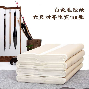 一海堂 文化宣纸 文房四宝 笔墨纸砚 书画练习纸初学者书学生纸宣纸白色毛边纸 白纸-六尺对开生宣/100张