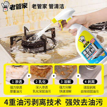 老管家重油污清洗剂500g*4柠檬香厨房油污清洁剂油烟机清洁剂油污净