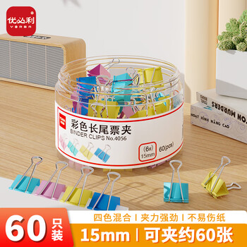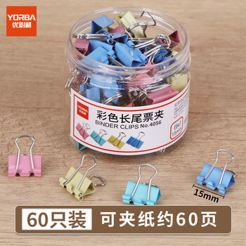 优必利 长尾夹彩色燕尾夹金属铁夹凤尾夹文件夹蝴蝶夹小夹子 办公用品资料固定票夹 15mm60只/筒 4056