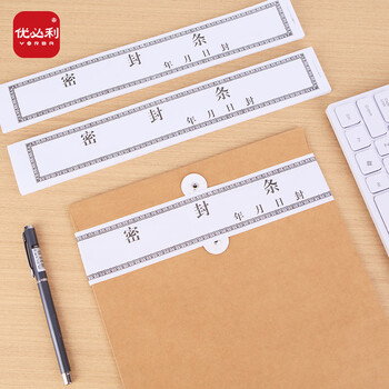 优必利 投标文件袋封口条 资料档案袋封条 不干胶无须胶水密封条 加宽31*5cm一百张 1845