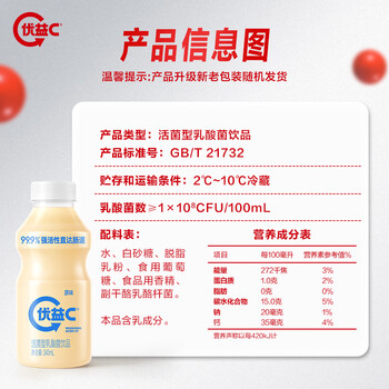 蒙牛(MENGNIU)杨紫推荐 优益C乳酸菌饮品0脂肪原味340mL*4瓶