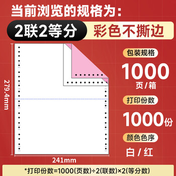 天章 (TANGO)【缺页十倍赔】天章风二联二等分不撕边 针式电脑打印纸 出入库送货清单 1000页 241-2-1/2(白红)