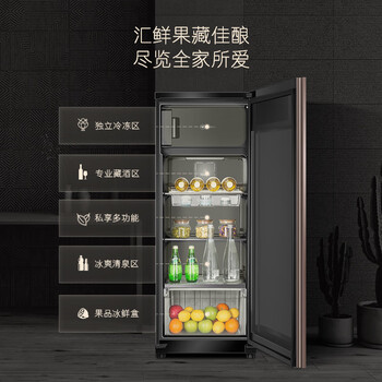 卡萨帝(Casarte)揽光166L冰吧家用冷藏柜保鲜柜客厅大容量多功能精致小冰箱立式小型冰柜双温制冰DS0166DK