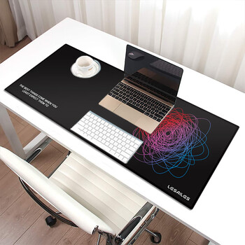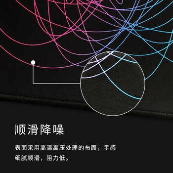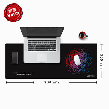 飞遁LESAILES彩色线条游戏电竞鼠标垫 大号锁边电脑键盘桌垫 易清洁 黑色800*300*3mm
