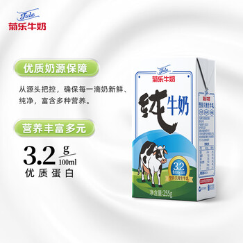 菊乐牛奶全脂纯牛奶250ml*24盒/255g*24盒新老包装随机发1件