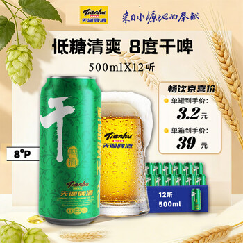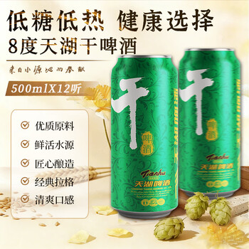 天湖啤酒8度干啤啤酒 低糖低热500ml*12听年整箱装京东自营超市
