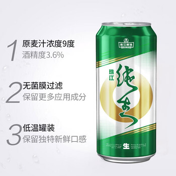 珠江啤酒(PEARL RIVER)9度 纯生啤酒 500ml*12听 整箱装 京东自营 鲜爽解腻踏春送礼