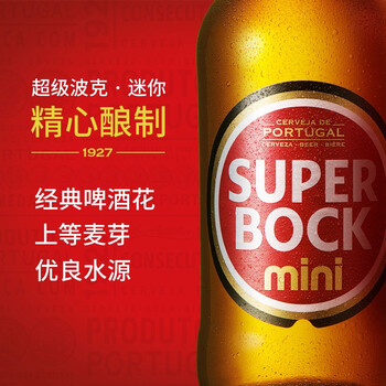 超级波克(SUPER BOCK)mini黄啤 进口啤酒 200ml*24瓶 聚会烧烤送礼整箱装 葡萄牙原装