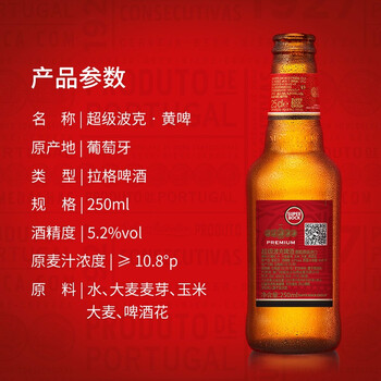 超级波克(SUPER BOCK)经典黄啤酒 进口啤酒 250ml*24瓶 聚会烧烤送礼整箱装葡萄牙原装