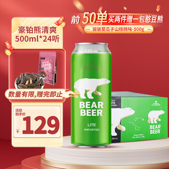 豪铂熊(BearBeer)德国精酿清爽啤酒500ml*24听 整箱装 京东自营 春日聚会畅饮