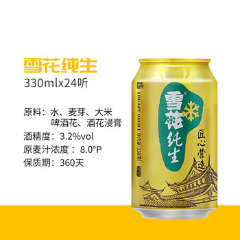 雪花啤酒(Snowbeer)纯生8度330ml*24听 匠心营造纯生工艺 自营热销