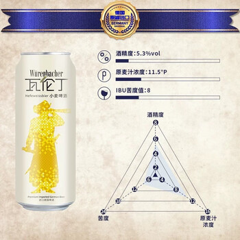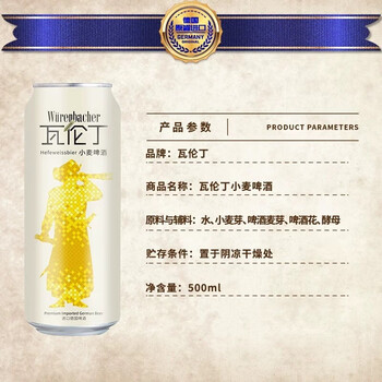 瓦伦丁(Wurenbacher)德国原装进口小麦啤酒500ml*24听 精酿啤酒整箱装 自营热销