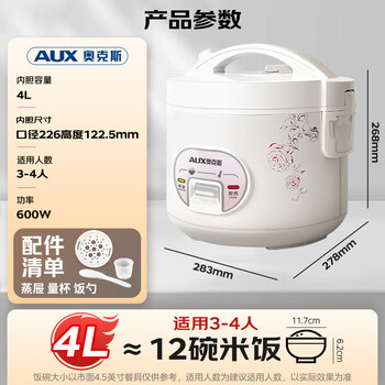 奥克斯(AUX)电饭煲 电饭锅 4L家用简易操作老式西施煲 宿舍蒸米饭大容量煮饭小型电饭锅 3-4个人 VK-401X8