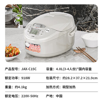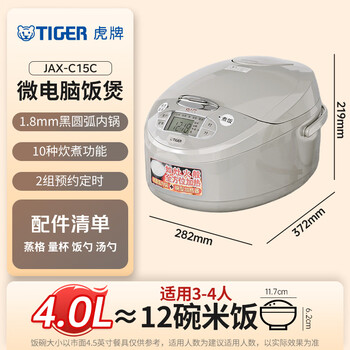 虎牌(TIGER)电饭锅 智能微电脑电饭煲家用 3-4人 4L JAX-C15C