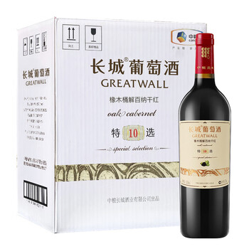 长城(GreatWall)红酒 特选10 橡木桶解百纳干红葡萄酒 整箱装 750ml*6瓶*1箱