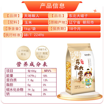 天地粮人甄制天地粮人精品 大碴子1kg(大粒 玉米碴 粗粮杂粮 )