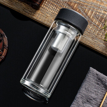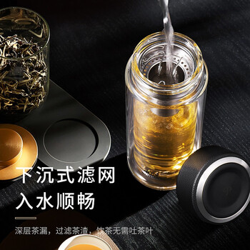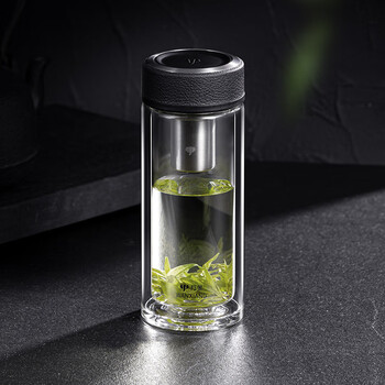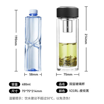 万象(WANXIANG)双层玻璃杯经典皮纹V21RL商务办公礼盒泡茶杯480ML大容量家用水杯