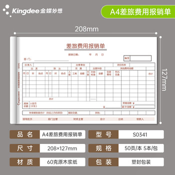 金蝶(kingdee)差旅费报销单财务手写报销单据 财会用品单据208*127mm 50张/本 5本/包